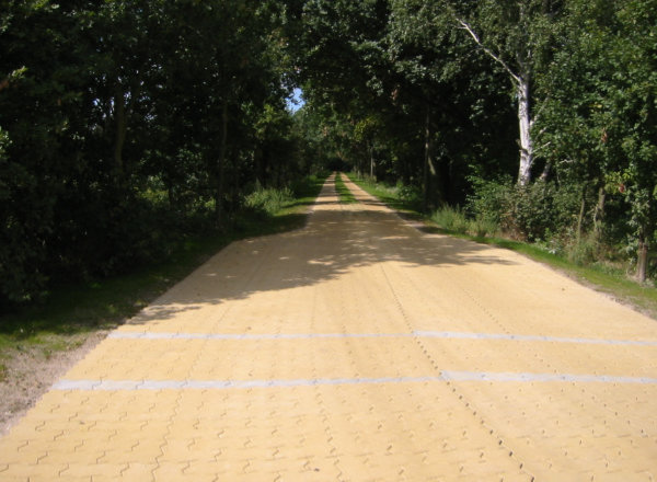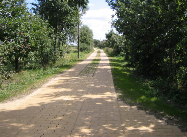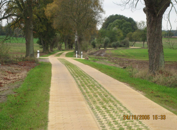 Spurbahn mit Rasensteinen
